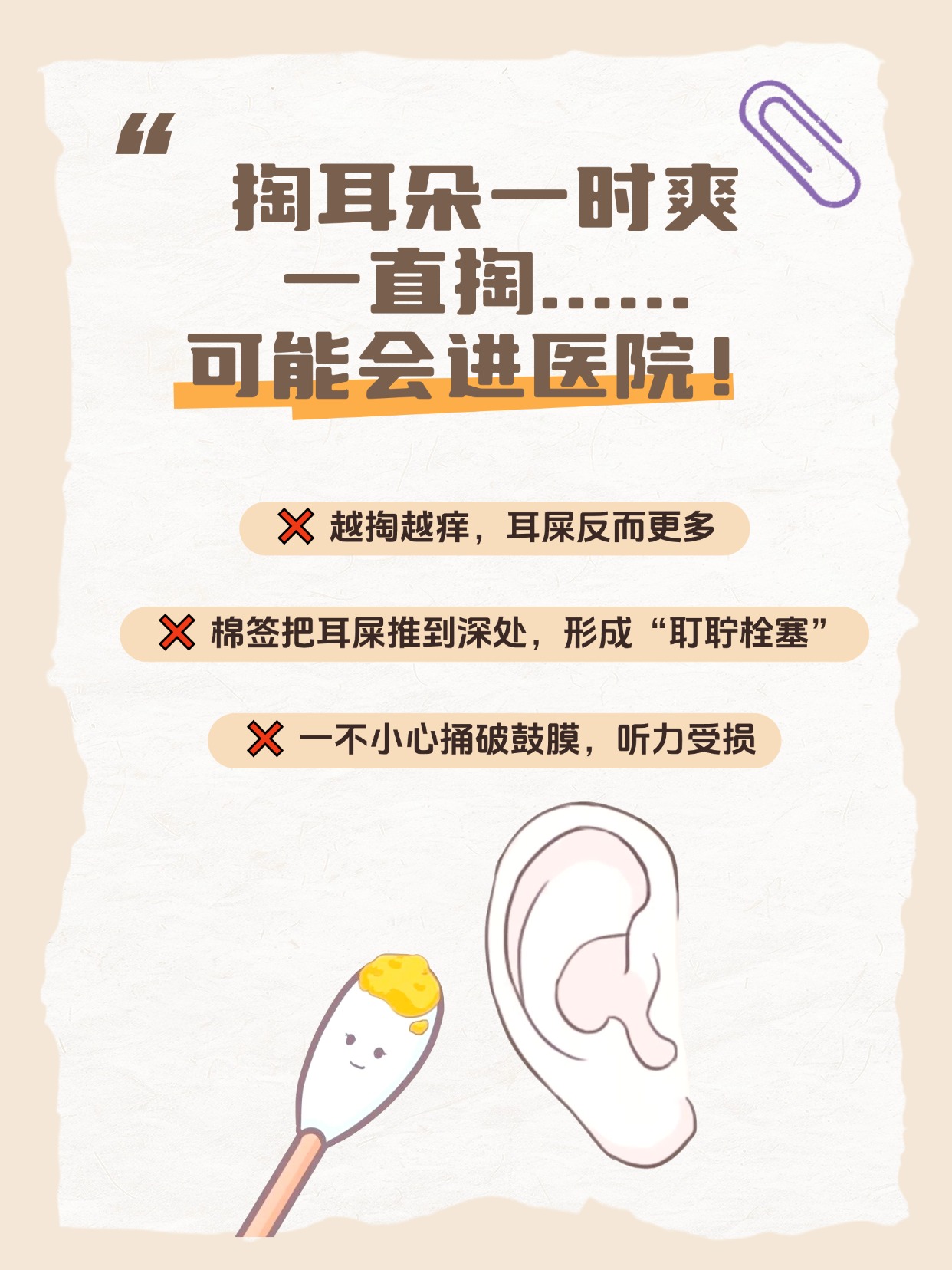 孩子耳屎太多,千万别用棉签掏!